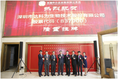 今天,達科為股票(代碼: 837900)正式登陸新三板,在萬眾矚目下,我們一起期待公司在生物行業中轟轟烈烈的新征程!同事們,我們一起加油!